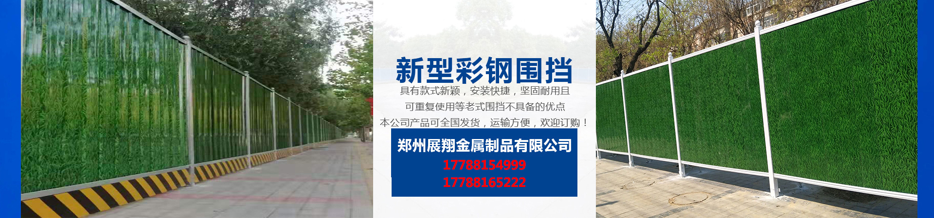 鄭州展翔金屬制品有限公司成立于2018年,公司專業(yè)從事市政設(shè)施的研發(fā)和生產(chǎn),經(jīng)過多年的積累和培養(yǎng),公司擁有一批經(jīng)驗豐富的技術(shù)人才,公司主要生產(chǎn)新型市政圍擋、施工圍擋、彩鋼圍擋、工程圍擋、地鐵圍擋、PVC圍擋、及交通設(shè)施系列金屬產(chǎn)品,公司旗下的新型彩鋼圍擋、具有安裝方便,運輸方便,拆裝方便,堅固耐用,款式新穎,美觀大方、二次使用率高、無污染等優(yōu)點產(chǎn)品暢銷全國